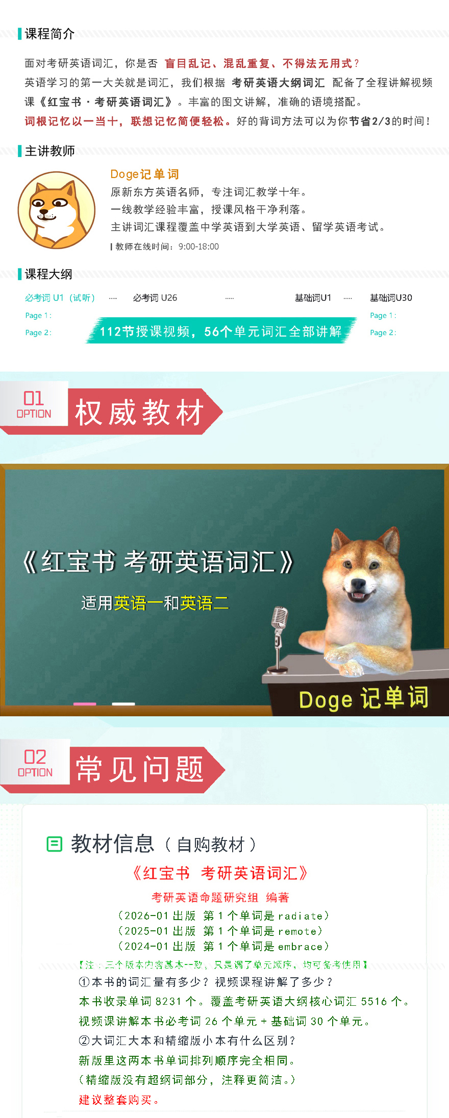 ① 教材自购,27版/26版/25版几本书词汇量几乎完全一致,仅单元顺序调整,均可用来备考。 ② 购买课程后向客服索取历年真题资料,卷面解题技巧资料分享。