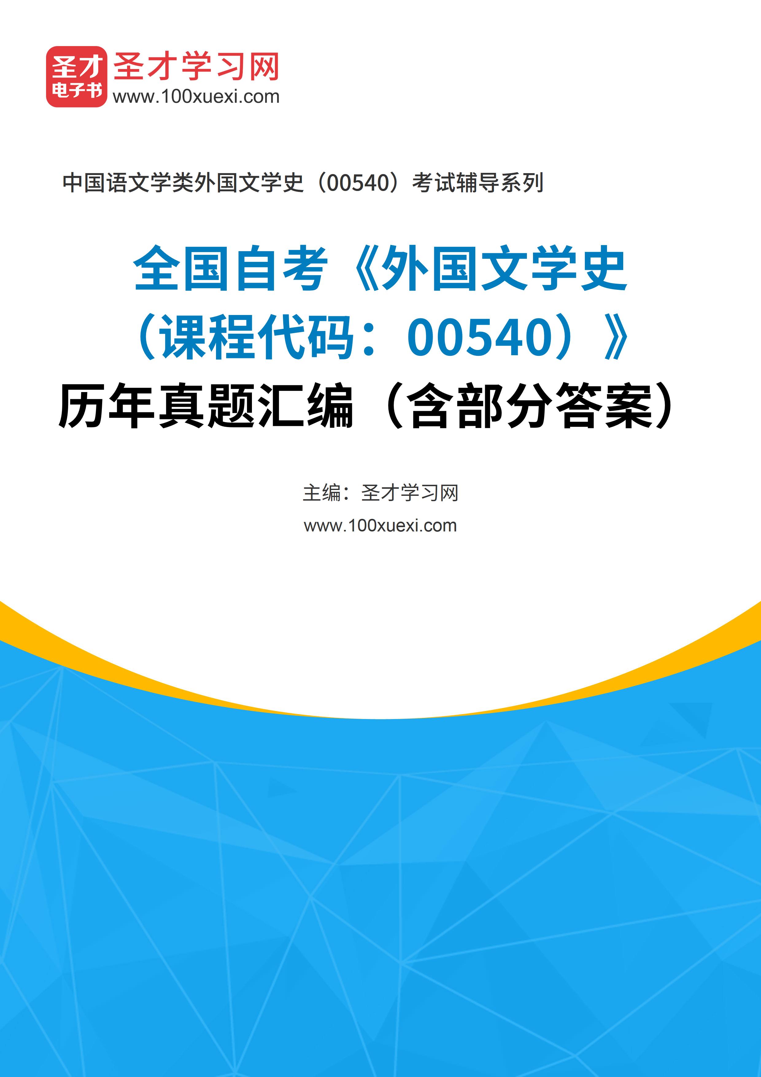 本书收录了全国自考“外国文学史(课程代码:00540)”的考试真题,并提供部分参考答案。历年真题是很有价值的复习备考资料,通过研习历年真题,可以了解本考试科目的出题风格、难度及命题点。