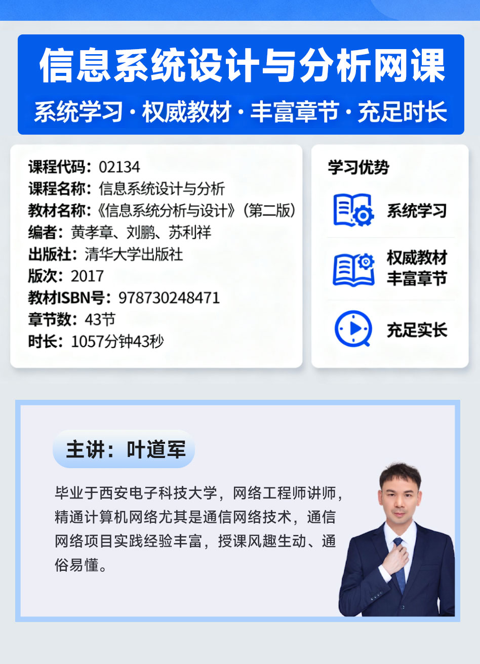 课程名称:2026年全国自考《信息系统设计与分析(课程代码:02134)》课程精讲