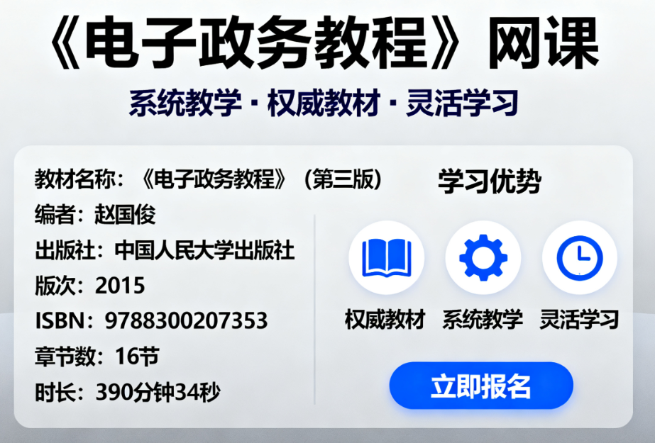 课程名称:2026年全国自考《电子政务(课程代码:07817)》课程精讲
