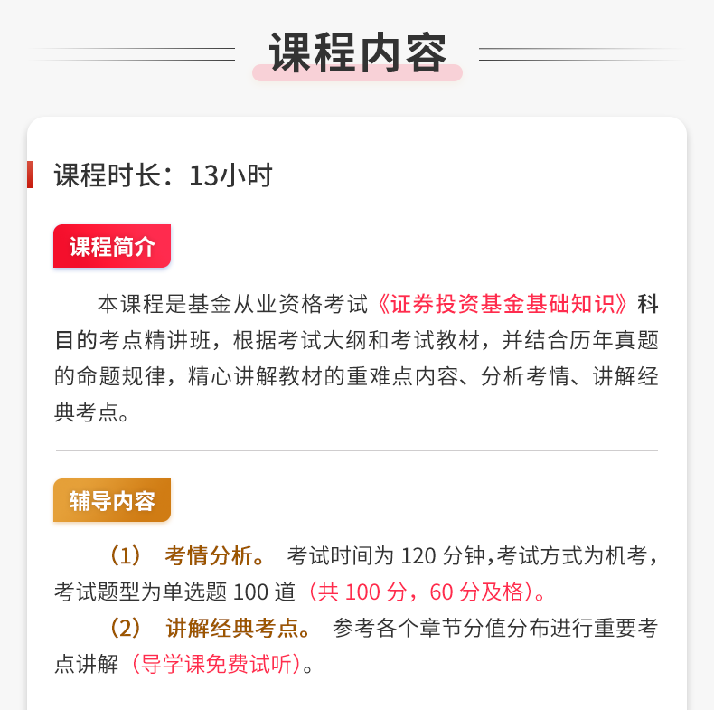 课程名称:2026年基金从业资格考试《证券投资基金基础知识》考点精讲班